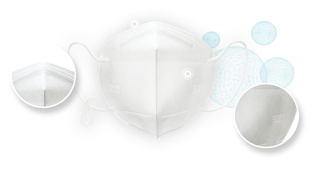 - 마스크를 코와 턱을 감싸도록 안면에 맞춘다.